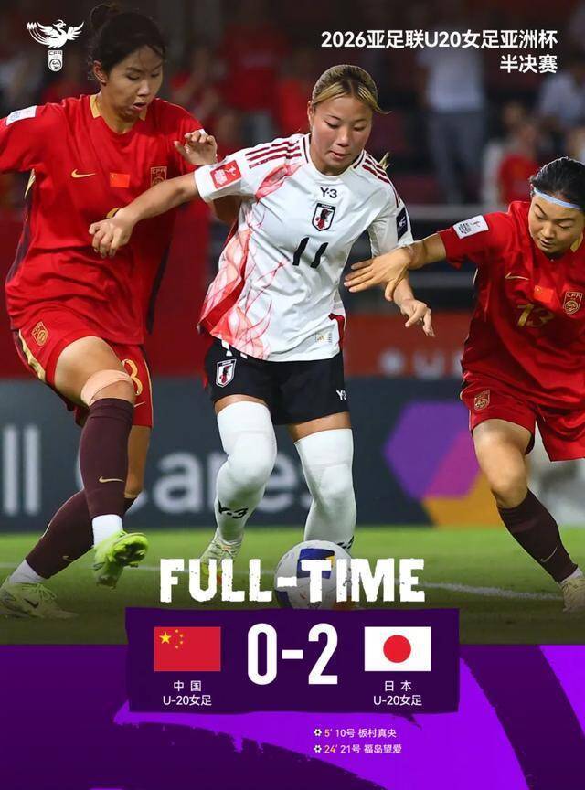 北京时间4月15日晚,在泰国进行的2026年亚足联U20女足亚洲杯半决赛中,中国队0比2不敌日本队,无缘决赛。